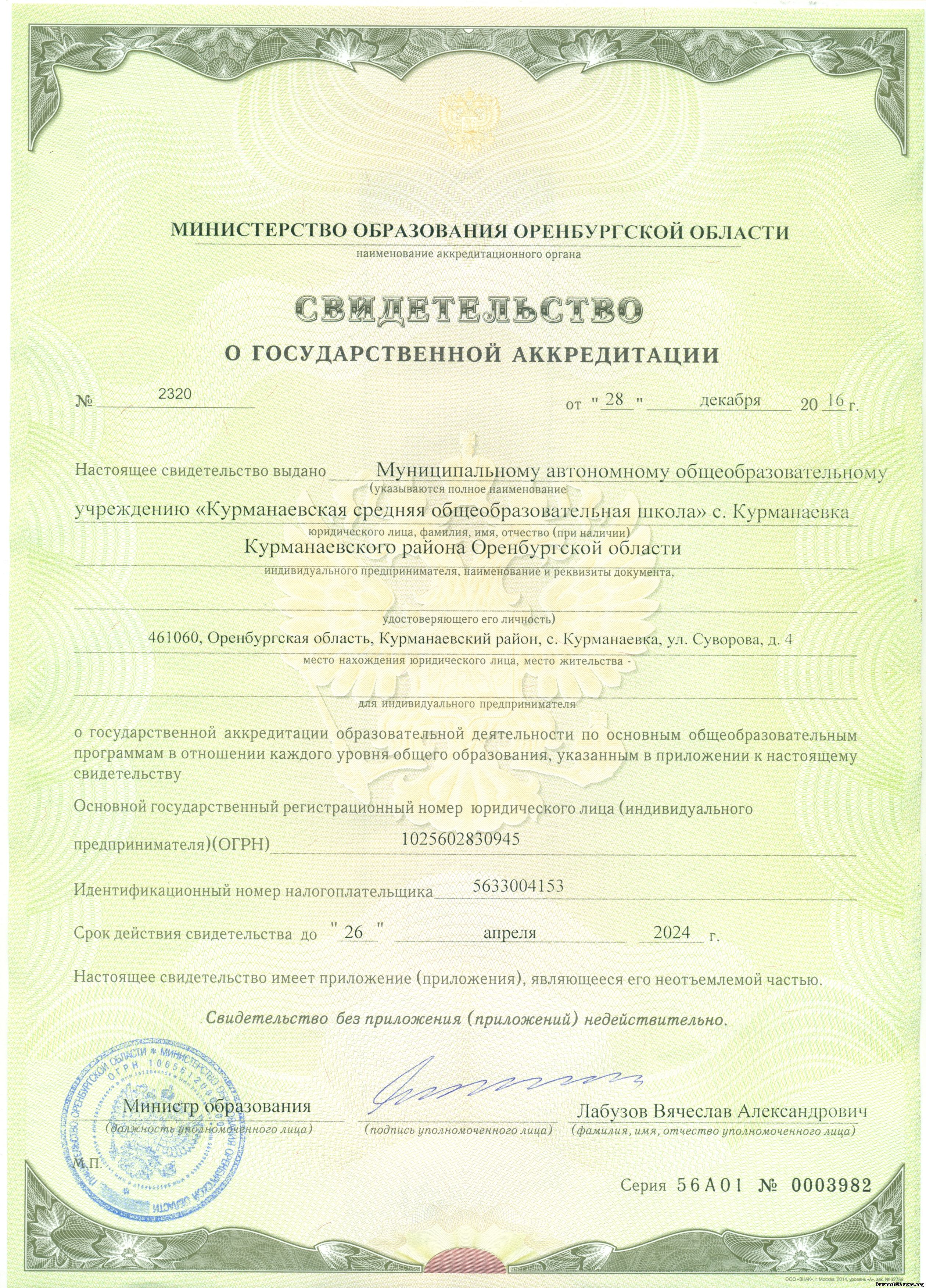 Изменения в уставе МАОУ "Курманаевская СОШ"
