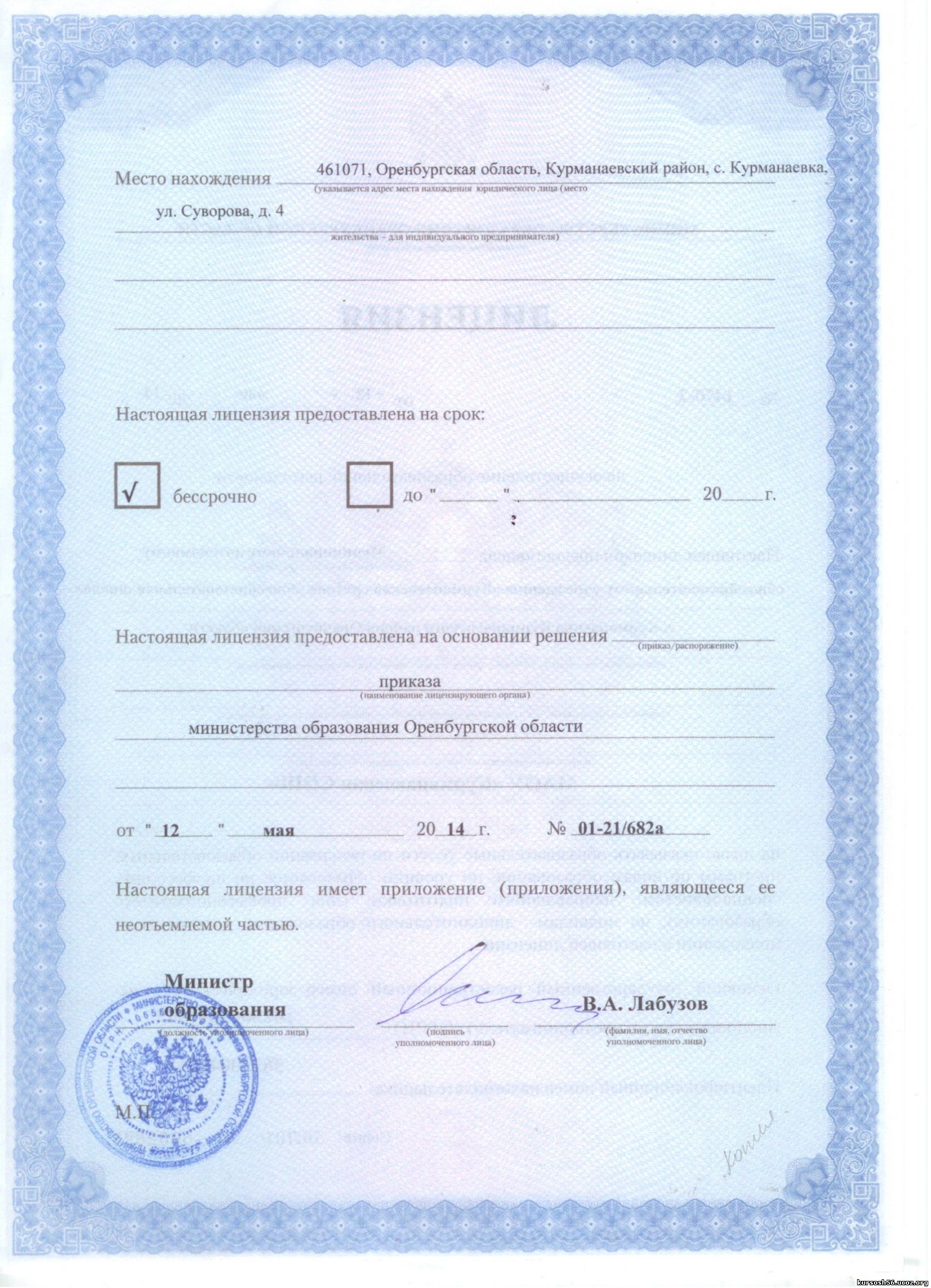 | Лицензия на осуществление образовательной деятельности № 1470-2 от 12.05.2014 года |