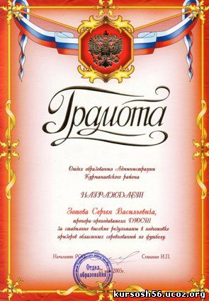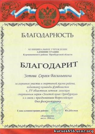 Почетная грамота администрации Курманаевского района Оренбургской области (2004)