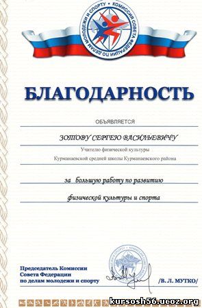 Почетная грамота Министерства по физической культуре, спорту и туризму Оренбургской области (2009).